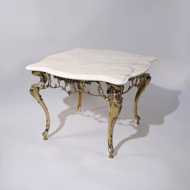 Бронзовый журнальный столик с мраморной столешницей «Бикош»