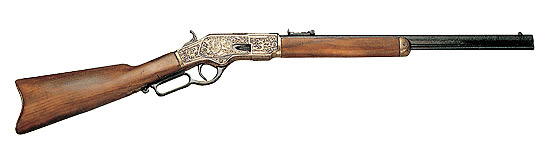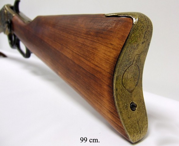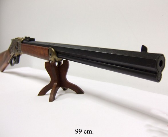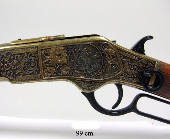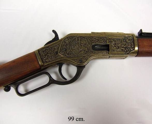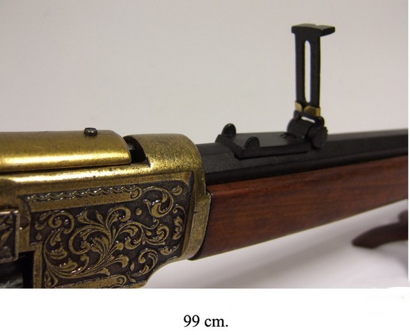 Описание "Макет ружья «Винчестер» 1873 г. латунь":Полноразмерный макет копия винтовки «Винчестер» образца 1873 года.