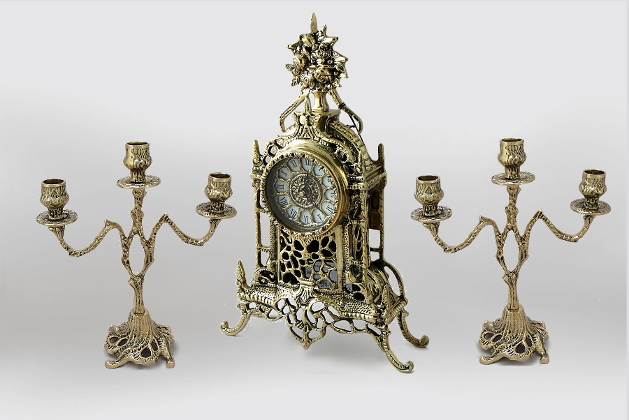 Часы каминные «Летний сад» с 2 канделябрами на 3 свечи