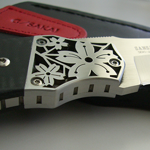 | Больстер ножа: | Больстер ножа состоит из двух частей скрепленных между собой на лезвии ножа и выполнен из нержавеющей стали в форме цветка сакуры |