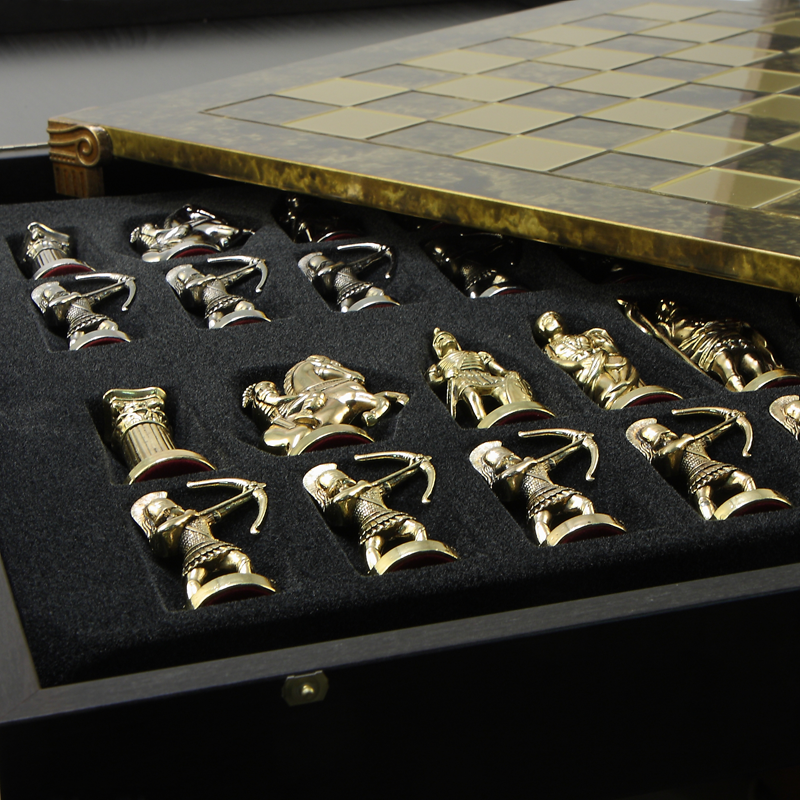 Описание "Шахматы сувенирные из металла Античные войны"::